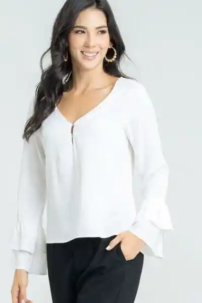 En Chalis Fondo Entero Escote en V Con Gotera y Botón Manga Larga Con Doble Bolero.