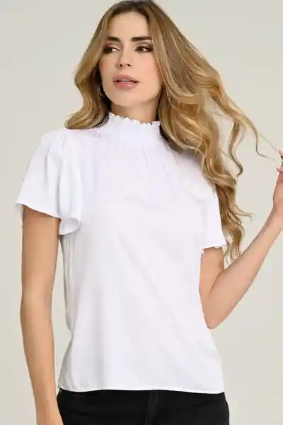En Tejido Plano Fondo Entero Cuello Alto Resortado Manga Corta Silueta Semi Ajustada.