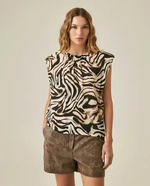 Moda Femenina Silueta Recta Escote Redondo Con Recogido Manga Sisa en Viscosa 58% y Rayón 42%. Escote Posterior Con Abertura y Botón Para Cerrar. Hombreras Para Dar Estructura. Tela Estampada Con Caída. Construcción Con Hombreras Estructuradas. Silueta Recta. Ean- 711H018Cru114302 Plu- 1111133264159.