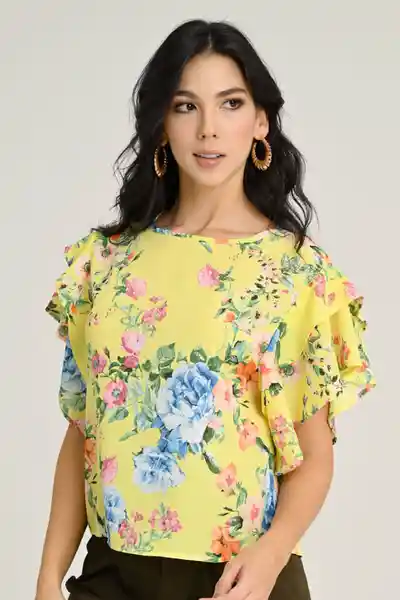 En Chifón Crepé Estampado Escote Redondo Con Abertura en Espalda y Botón Manga Corta Con Boleros.