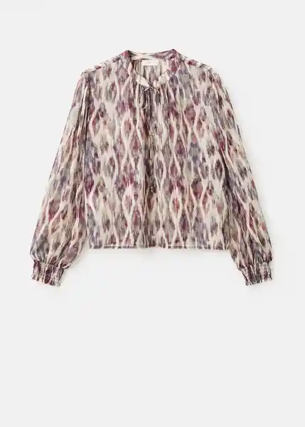 Cuello Redondo Con Tiras Para Lazo Diseño Abullonado Diseño Estampado Manga Larga Con Puños Elásticos Tejido Fluido Tejido Semitransparente - 17067122_05.