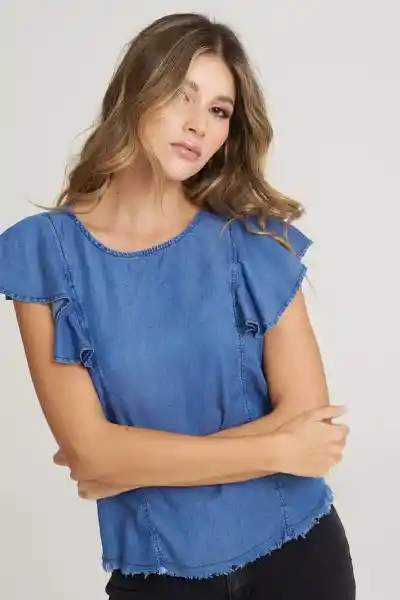 En Chambray Fondo Entero Escote Redondo Con Abertura en Espalda y Botón Manga Corta.