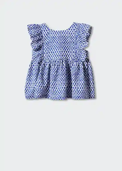 Abertura en la Espalda Cuello Redondo Estampado Manga Corta Volante Panel Fruncido Tejido Mezcla de Algodón y Lino - 47095933_52.