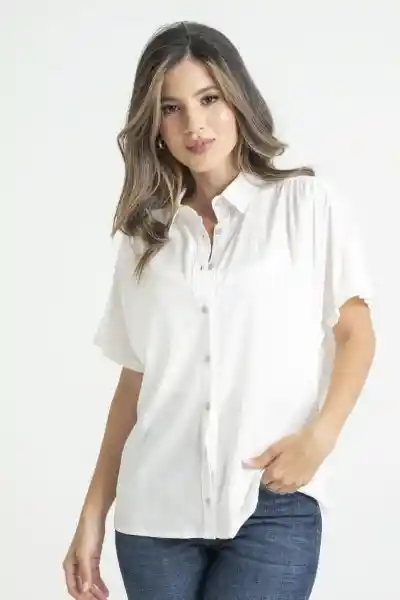 En Chalis Fondo Entero Cuello Camisero Perilla Completa Con Botones Manga Corta Rodada Almillas Con Recogido.