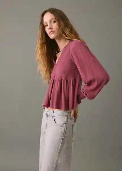 Cuello Pico Detalle Fruncido en el Bajo Diseño Evase Diseño Liso Manga Larga Con Puños Elásticos y Fruncidos Panel Nido de Abeja Tejido de Viscosa Tejido Fluido - 17045791_76.