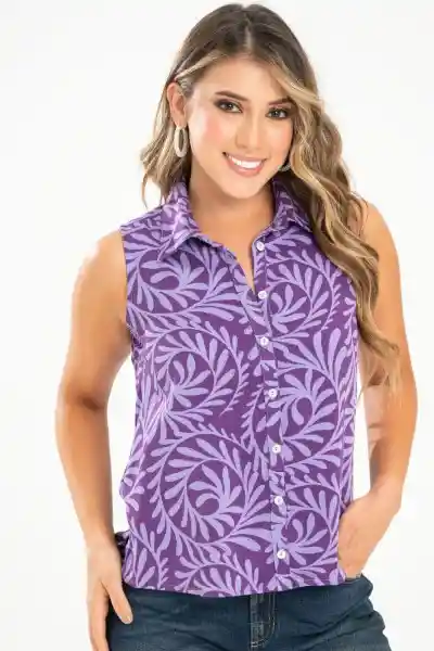 En Tejido Plano Estampado Cuello Camisero Perilla Completa en Centro Frente Con Botones 18L Manga Sisa Con Sesgo de 1 cm Asentado en la Parte Interna Abertura de 6 cms a Lado y Lado Del Ruedo Almilla en la Parte Superior Trasera.