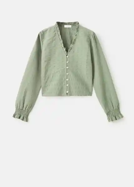 Cierre Delantero Con Botones Cuello Fruncido Cuello Pico Diseño Recto Manga Larga Con Puños Elásticos y Fruncidos Tejido 100% Algodón Tejido Con Textura - 17097121_37.