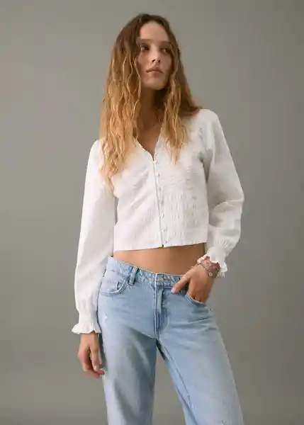 Cierre Delantero Con Botones Cuello Fruncido Cuello Pico Diseño Recto Manga Larga Con Puños Elásticos y Fruncidos Tejido 100% Algodón Tejido Con Textura - 17097121_02.