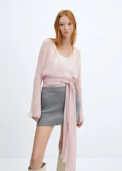 Cuello Pico Detalle Nudo Diseño Cruzado Manga Larga Sin Cierre Tejido de Gasa Tejido Fluido - 57067756_85.