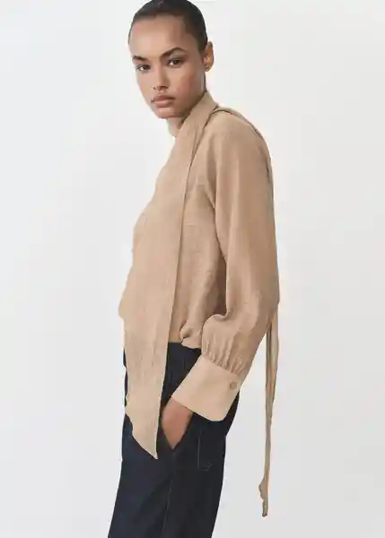 Con Textura Cuello Alto Diseño Recto Lazo en el Cuello Manga Larga Con Puños Abotonados Sin Cierre - 87025766_30.
