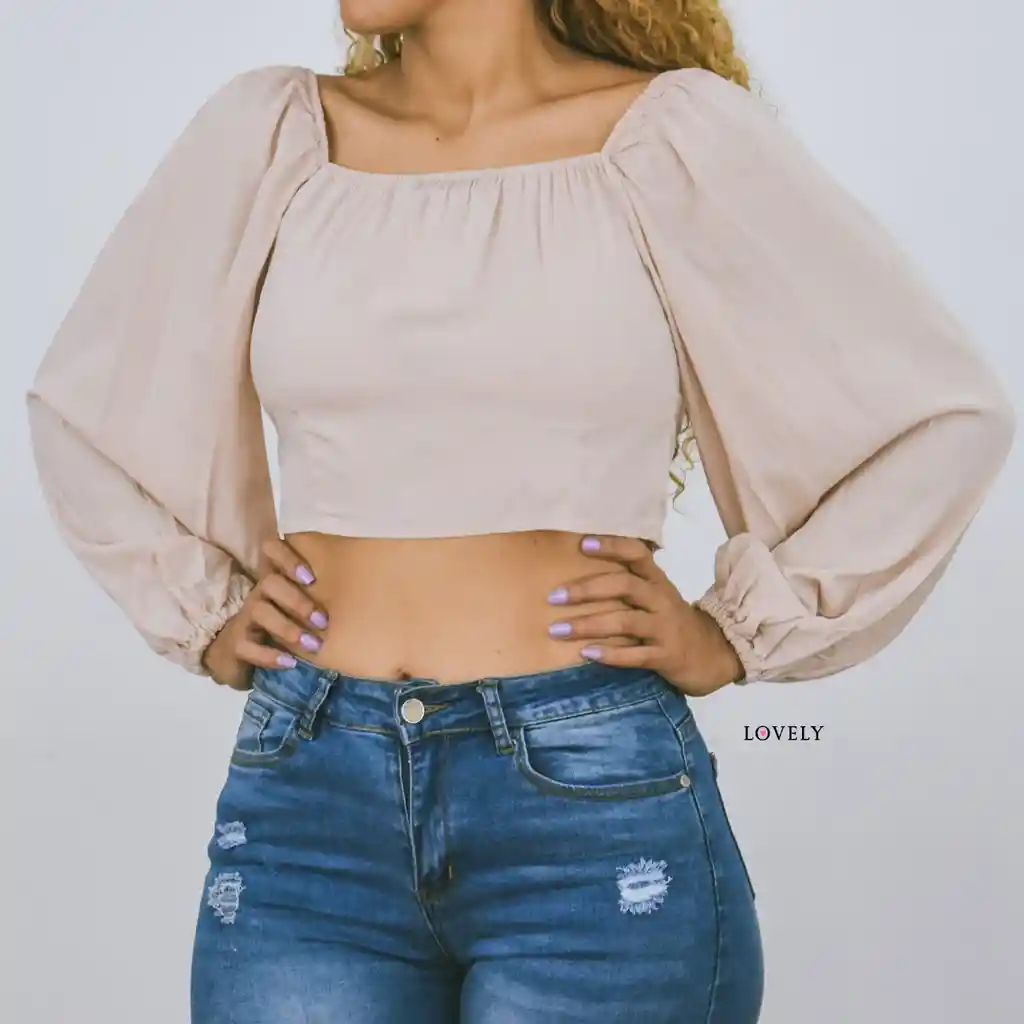 Blusa corta con escote en la parte trasera ideal para darle un toque de frescura a tu outfit elegante.