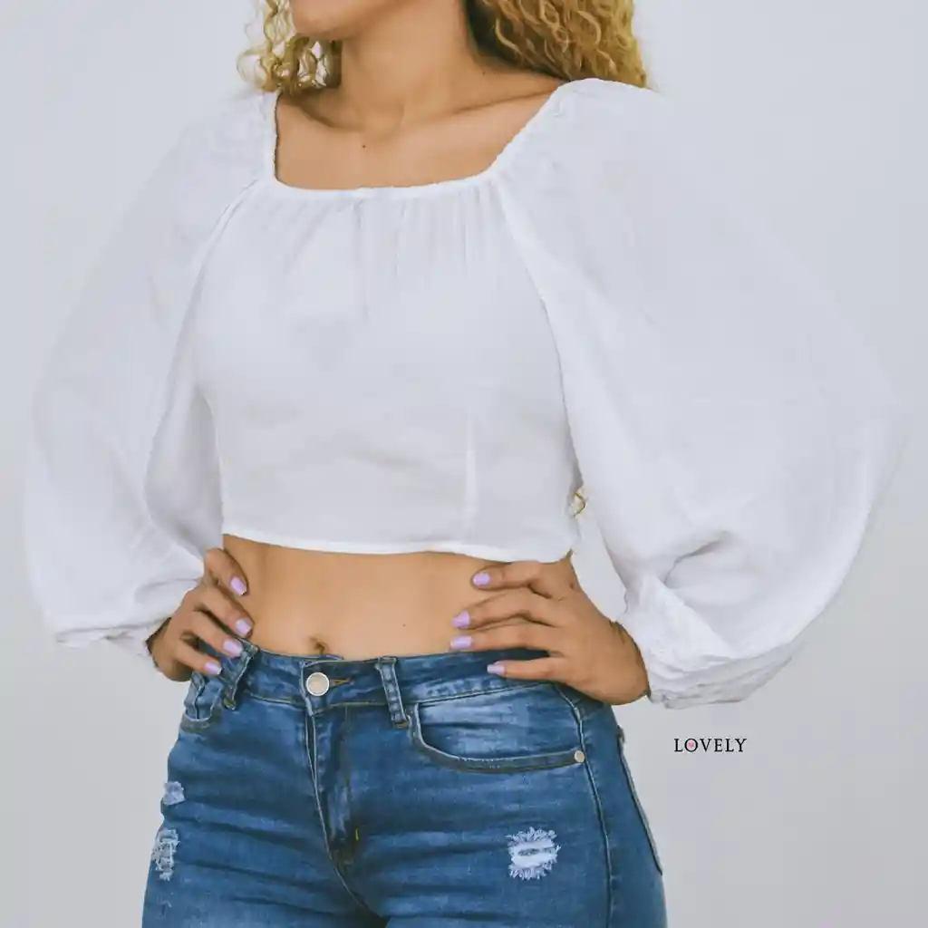 Blusa corta con escote en la parte trasera ideal para darle un toque de frescura a tu outfit elegante.