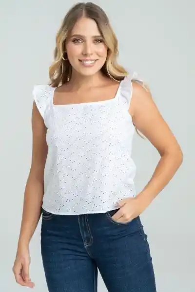 En Algodón Ojalillo Escote Recto Tiras Bolero.