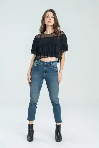 En Tejido de Punto Tipo Mesh Cuello Redondo Con Abertura y Botón de Pata de 18L Manga Corta en Tres Capas Silueta Semi Ajustada.