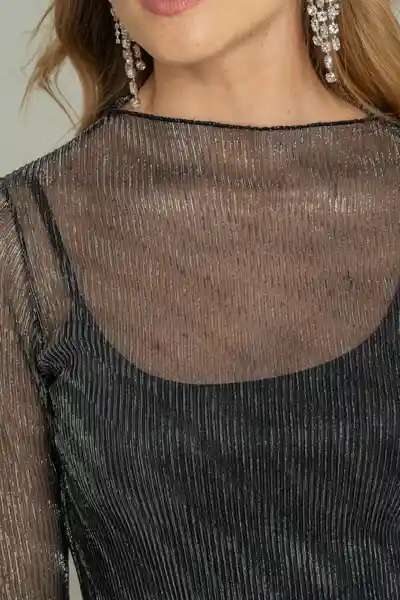 En Mesh Con Brillo y Acabado Especial Manga Larga Con un Poco de Campana Terminaciones en Minifilete Silueta Semi Ajustada.