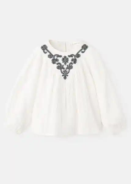 Bordado de Micro Abalorios Bordado Floral Cuello Redondo Con Cierre de Botón Diseño Bordado Diseño Evasé Manga Larga Abullonada Tejido 100% Algodón Tejido de Bambula - 27051173_01.