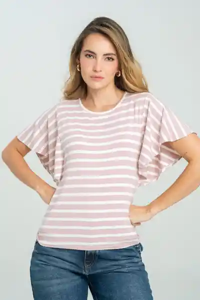En Tejido de Punto de Rayas Cuello Redondo Con Sesgo de 1 cm Manga Corta Con un Poco de Vuelo Silueta Semi Ajustada..