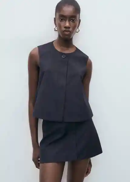 Cierre Delantero de Botón Cuello Redondo Diseño Crop Diseño Evase Efecto Globo en el Bajo de la Parte Posterior Estampado de Raya Diplomática Sin Mangas Tirantes Anchos Total Look Ubicación Cierre Cierre Delantero - 17074089_56.