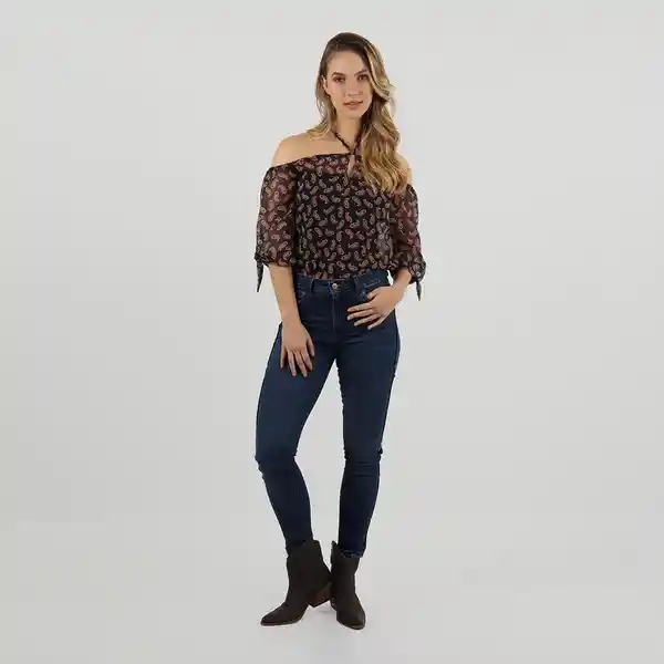 Blusa Cuello Bandeja Manga 3/4 Multicolor Talla XS 79693