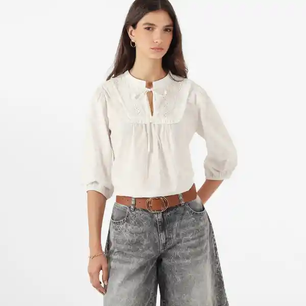 Blusa Cuello V Neru Manga 3/4 Blanco Talla XS 680387