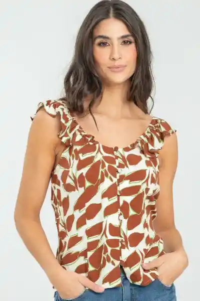 En Chalis Estampado Escote Redondo Con Bolero Decorativo de Tiras Perilla Con Botones Forrados Decorativos.