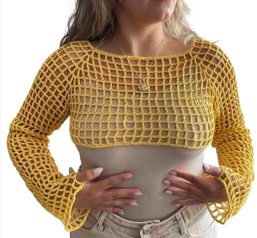 Blusa malla tejida a mano en hilo algodón color amarillo💖