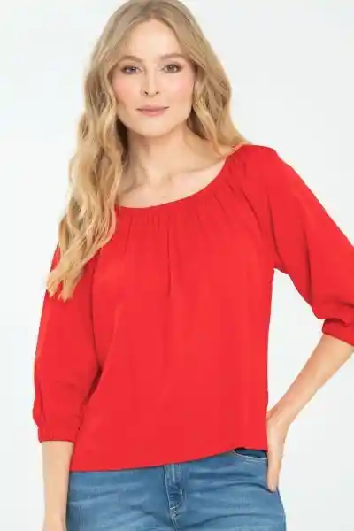 En Chalis Fondo Entero Escote Redondo Con Elástico y Recogido Manga 3/4 Con Elástico en Ruedo Del Puño.