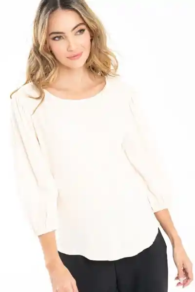 En Chalis Fondo Entero Escote Redondo Manga 3/4 Con Elástico en Ruedo.