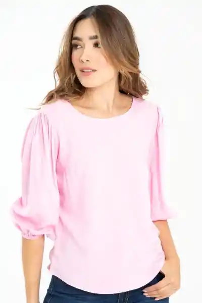 En Chalis Fondo Entero Escote Redondo Manga 3/4 Con Elástico en Ruedo.