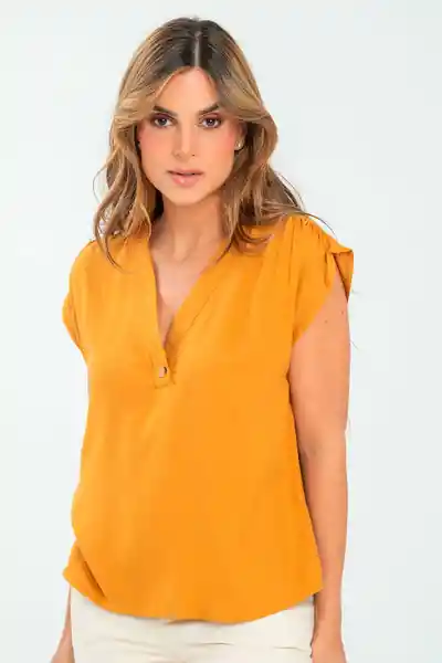 En Tejido Plano Fondo Entero Escote en V Con Perilla y Botón Fijo Recogido en Hombros Manga Rodada Silueta Amplia.