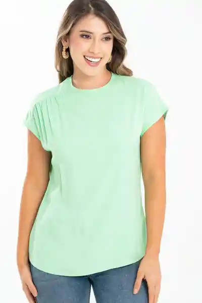 En Tejido Plano Fondo Entero Cuello Con Sesgo de 1 cm Asentado en la Parte Interna Abertura Con Botón de Pata de 18 L y Ojal en Tela Manga Corta Rodada Con Sesgo en Puño Corte Con Detalle de Recogido Suave y Parejo Silueta Semi Ajustada.