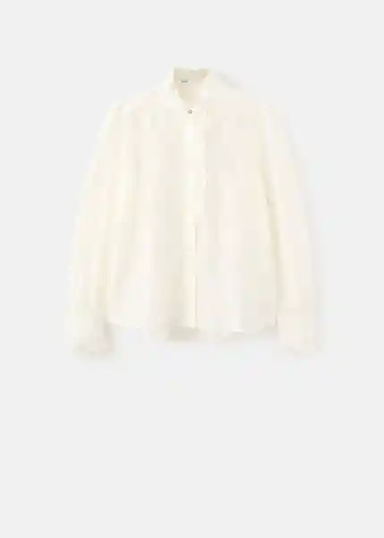 Cierre Delantero Con Botones Cuello de Tira Detalle Bordado Flor Diseño Recto Manga Larga Con Puños Abotonados Tejido Mezcla Lyocell - 27085824_05.