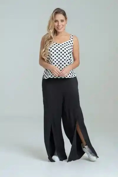 En Tejido Plano Estampado Escote en V Tanto en Delantero Como en Trasero Con Falso Tiras de 2 cms Aberturas de 5 cms a Lado y Lado Del Ruedo en Los Costados Silueta Semi Ajustada.