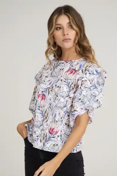 En Crepe Estampado Escote Redondo Con Abertura en Espalda 2 Volante en Manga.