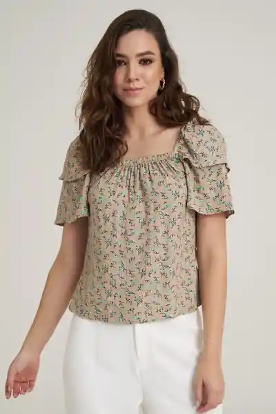 En Chalis Estampado Escote Rsortado Manga Corta Doble.