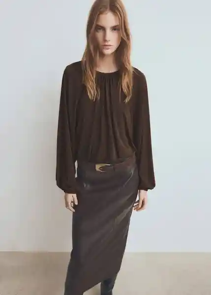 Cierre de Botón en la Parte Posterior Cuello Redondo Detalles Fruncidos Diseño Recto Forro Interior Manga Larga Con Puños Elásticos y Fruncidos Tejido de Punto Fino - 27071301_30.