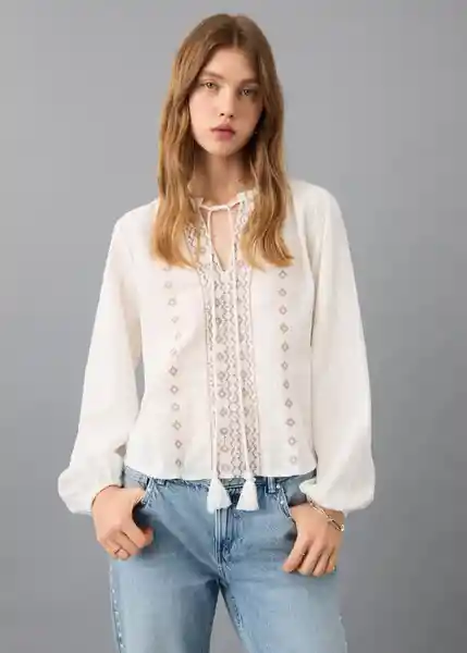 Bordado de Micro Abalorios Cuello Redondo Con Tiras Para Lazo Dibujo Bordado Diseño Bordado Manga Larga Abullonada Tejido 100% Algodón - 27021292_02.