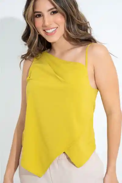En Chalis Fondo Entero Escote Asimétrico Con Recogido en un Hombro y Tira en el Otro Ruedo en Punta Delantera Silueta Semi - Ajustada..