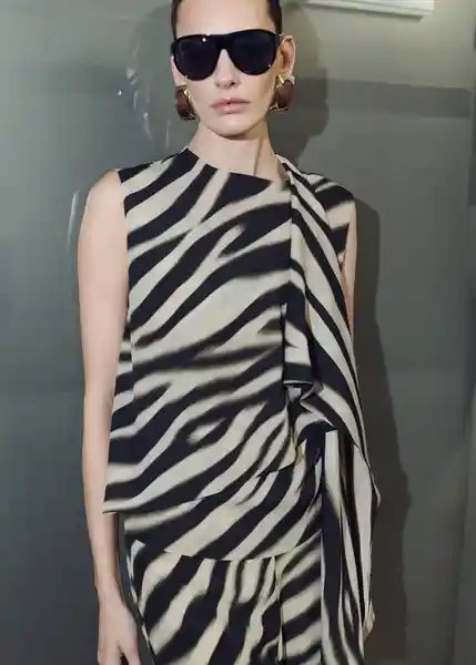 Adorno de Fular en el Cuello Cierre de Cremallera Cuello Redondo Diseño Recto Estampado de Cebra Sin Mangas Tirante Ancho - 27064103_99.