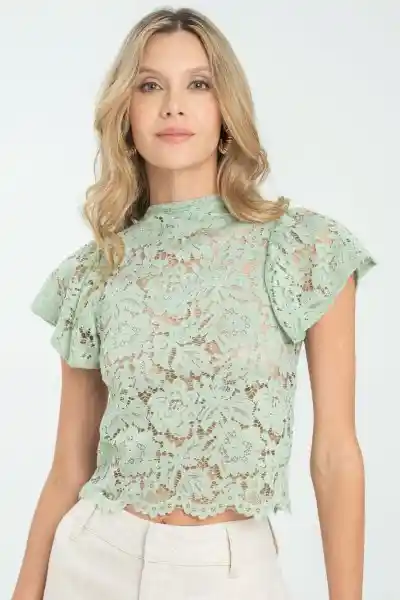 En Tejido de Punto Blonda Cuello Alto Manga Corta Bolero Silueta Semi - Ajustada