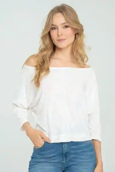 En Tejido de Punto Bordado Devoré Fondo Entero Escote Tipo Barco Manga 3/4 Fajón en Ruedo Corte en Centro Frente y Espalda.