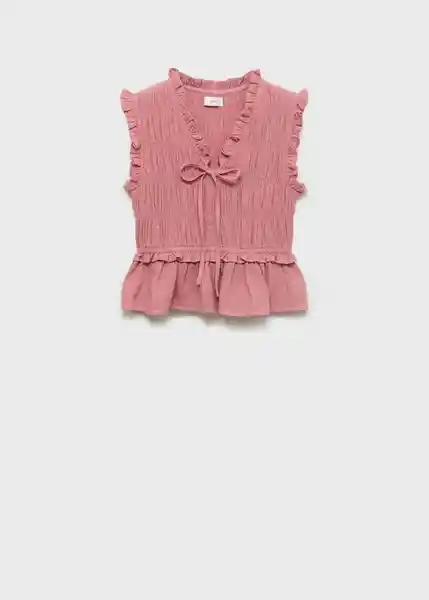 100% Algodón Bajo Con Volante Cierre de Lazos en la Parte Delantera Cuello Pico Diseño Recto Goma Elástica Panel Fruncido Sin Mangas - 87087706_83.