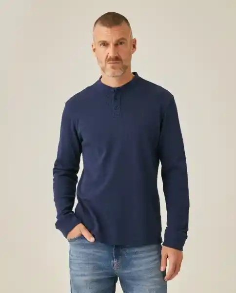 Talla: XL. Masculina Slim Fit Manga Larga Cuello Henley en Algodón 96% y Elastano 4%. Tela Simulación de Tejido Estilo Knitwear. Cuello y Puños en Rib. Estampado Localizado. Botones Marcados Tono a Tono. Marquilla Tejida en Costado. Construcción Con Apariencia Knitwear. Silueta Slim Fit Estilizada. Ean- 641H019Azu194031 Plu- 1111133254747.
