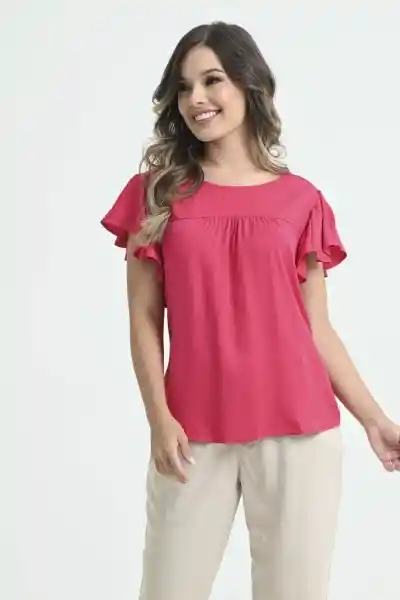 En Tejido Plano Fondo Entero Cuello Redondo Con Sesgo Asentado Almilla Delantera y Trasera Con Recogido Suave y Parejo Abertura Con Ojal en Tela y Botón de Pata 16L Manga Corta Con un Poco de Vuelo Que se Extiende a Los Costados.
