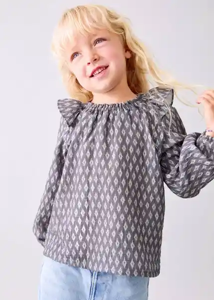 Cuello Fruncido Diseño Evasé Estampado Étnico Manga Larga Con Puños Elásticos Tejido 100% Algodón Volantes en Los Hombros - 17085161_68.