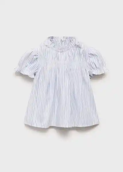 Cierre de Botones en la Parte Posterior Cuello Redondo Fruncido Detalle Fruncido Diseño Evasé Manga Corta Tejido de Algodón Tejido de Rayas - 17053284_50.