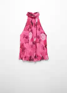 Cierre de Botones en la Parte Posterior Cuello Halter Diseño Evasé Efecto Arrugado Estampado Floral Sin Mangas Tejido Fluido - 67056341_88.