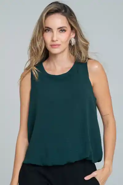 Blusa en tejido plano fondo entero, cuello de 2cms en la misma tela, manga sisa, cierre niquel con correder decorativa en la parte superior posterior, corte en centro espalda, terminación en ruedo tipo globo, silueta semi ajustada.