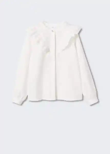 Botón Efecto Joya Cierre de Botones en la Parte Delantera Cuello Redondo Detalle de Volantes Manga Larga Tejido 100% Algodón - 47000199_01.