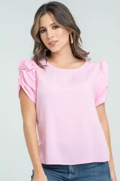 En Tejido Plano Fondo Entero Cuello Redondo Con Sesgo de 1 cm Asentado en la Parte Interna Manga Corta Doble Con Recogido en el Lateral Silueta Semi - Ajustada.